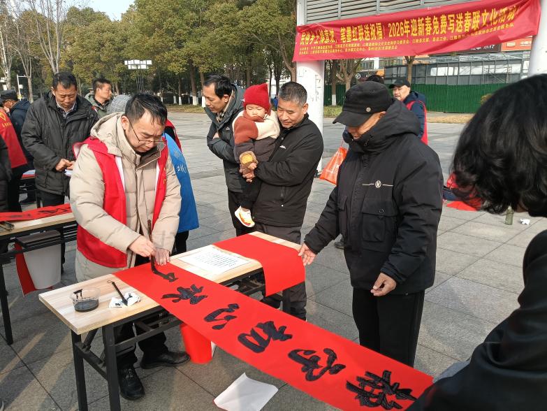 2026江陵迎新春免费写送春联活动暖心启幕!书法家与书法爱好者挥毫泼墨,将新春祝福凝于笔端。活动走进社区、乡镇,免费派送吉祥春联与福字,传承传统文化,营造浓厚年味,把温暖与喜庆送到群众身边。
